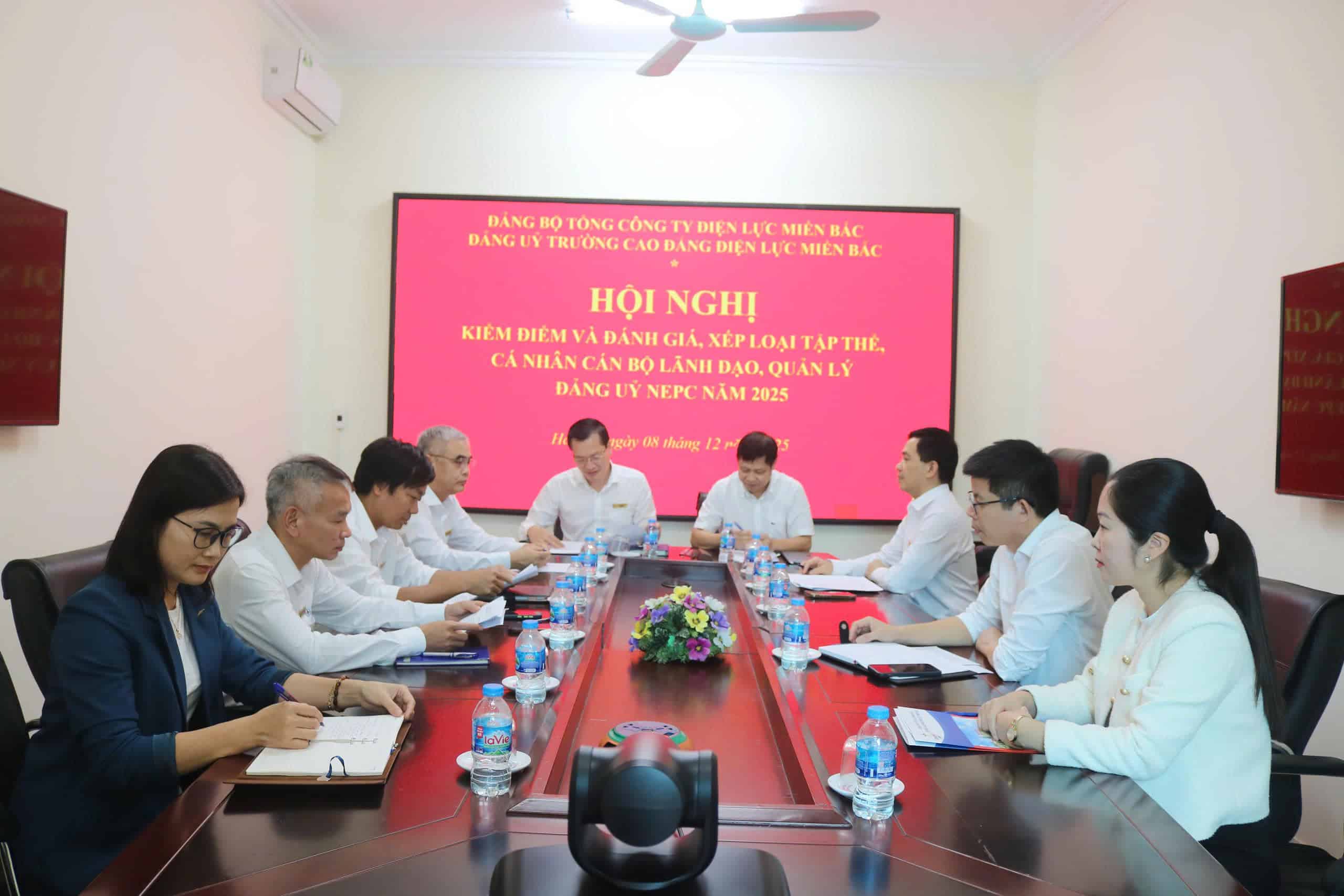 Thực hiện chương trình công tác năm 2025 và Kế hoạch kiểm điểm, đánh giá, xếp loại tổ chức đảng, đảng viên theo quy định của Đảng, ngày 8/ 12/2025, Đảng ủy Trường Cao đẳng Điện lực miền Bắc (NEPC) đã tổ chức Hội nghị kiểm điểm và đánh giá, xếp loại Tập thể, cá nhân cán bộ lãnh đạo quản lý.