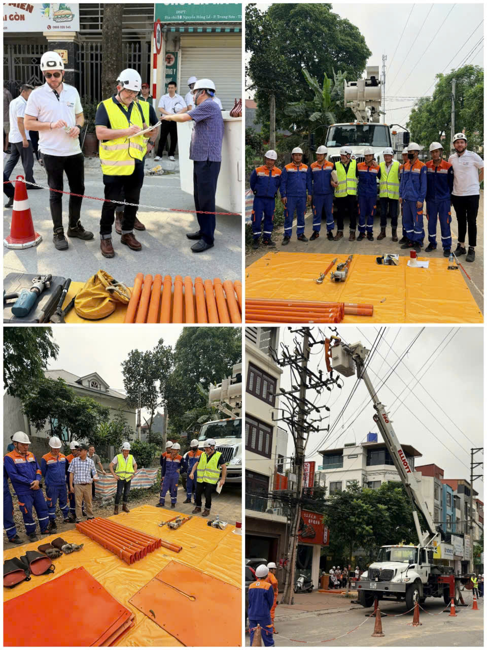 Tại các đơn vị, chương trình thực tế được tổ chức bài bản, đồng bộ với nội dung đào tạo. Học viên và chuyên gia đã tiến hành thu thập, phân tích dữ liệu liên quan đến tổ chức, vận hành và triển khai thi công hotline; trực tiếp quan sát các phiên thi công sửa chữa hotline trên lưới điện trung áp; đồng thời đánh giá toàn diện các yếu tố như tuân thủ quy trình an toàn, phương thức tổ chức thi công, điều kiện trang thiết bị và năng lực phối hợp của đội công tác.